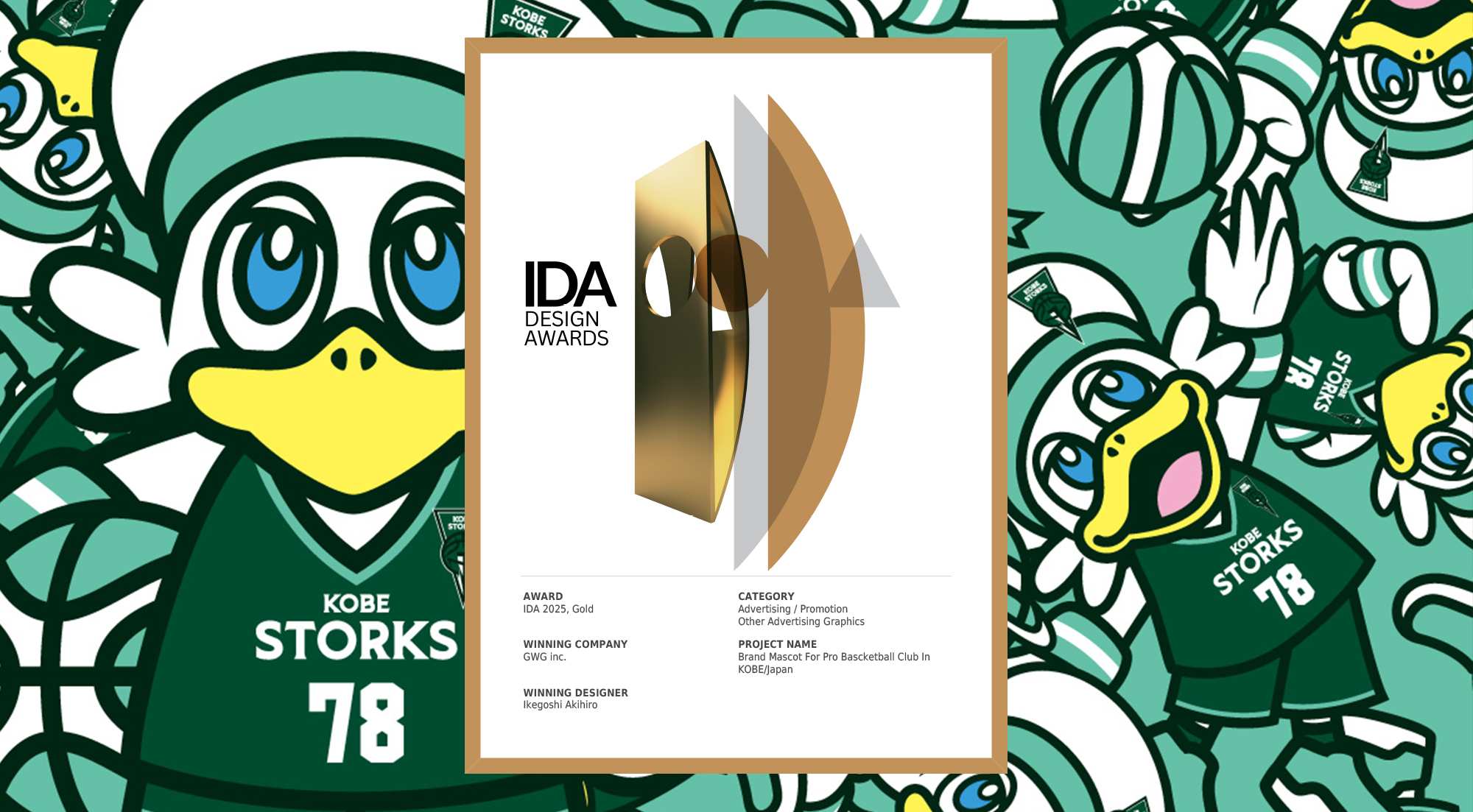「KOBE STORKS / Brand mascot for pro bascketball club」で受賞しました