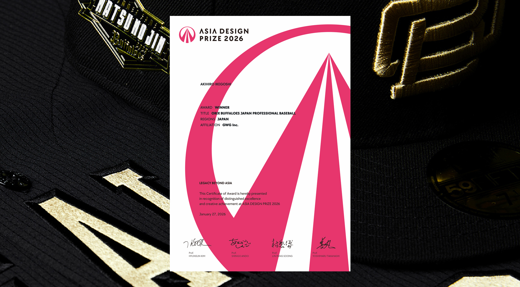 GWG inc. tokyo / osaka ASIA DESIGN PRIZE 2026 / WINNER 「ORIX BUFFALOES / NATSU NO JIN 2024」で受賞しました ASIA DESIGN PRIZE 2026 / WINNERhttps://asiadesignprize.com/index.php?&mid=exhibition&search_keyword=orix&search_target=title_content&document_srl=331982