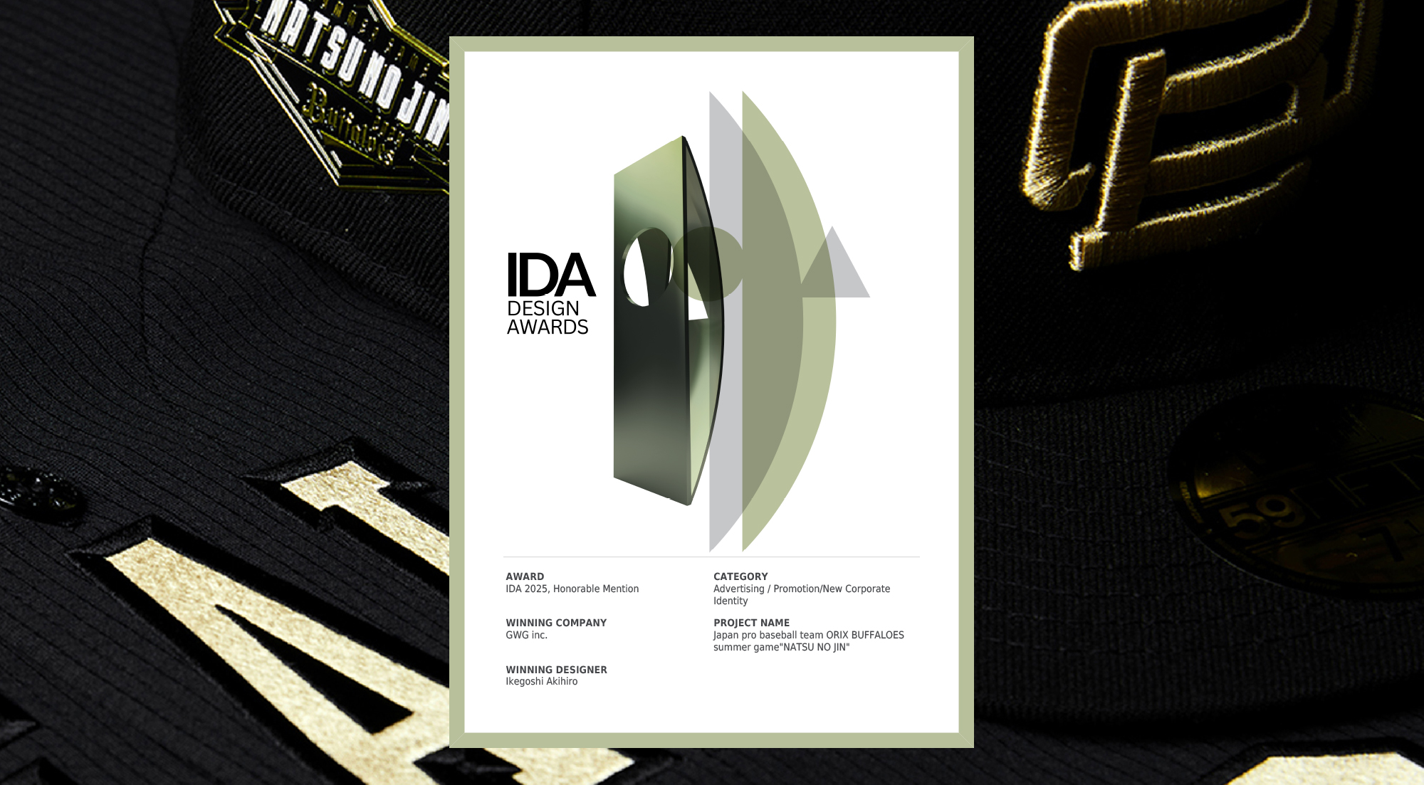 GWG inc. tokyo / osaka 「ORIX BUFFALOES / NATSU NO JIN 2024」で受賞しました International Design Awards (IDA) 2025 / Honorable Mentionhttps://www.idesignawards.com/winners/zoom.php?eid=9-61827-25 2026.03.29