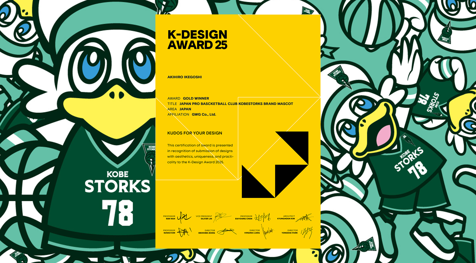 GWG inc. tokyo / osaka K-DESIGN AWARD 2025 / GOLD WINNER 「KOBE STORKS / Mascot rebranding」で受賞しましたK-DESIGN AWARD 2025 / GOLD WINNER